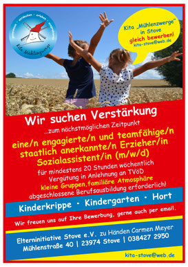die Geschicke der Kita wurden 1999 aus kommunaler Hand in die Hände von aktiven Eltern gelegt, die diese kleine familiäre Einrichtung erhalten wollten. Und so ist es auch heute noch. Träger der Kindertagesstätte ist der Verein Elterninitiative Stove e.V.